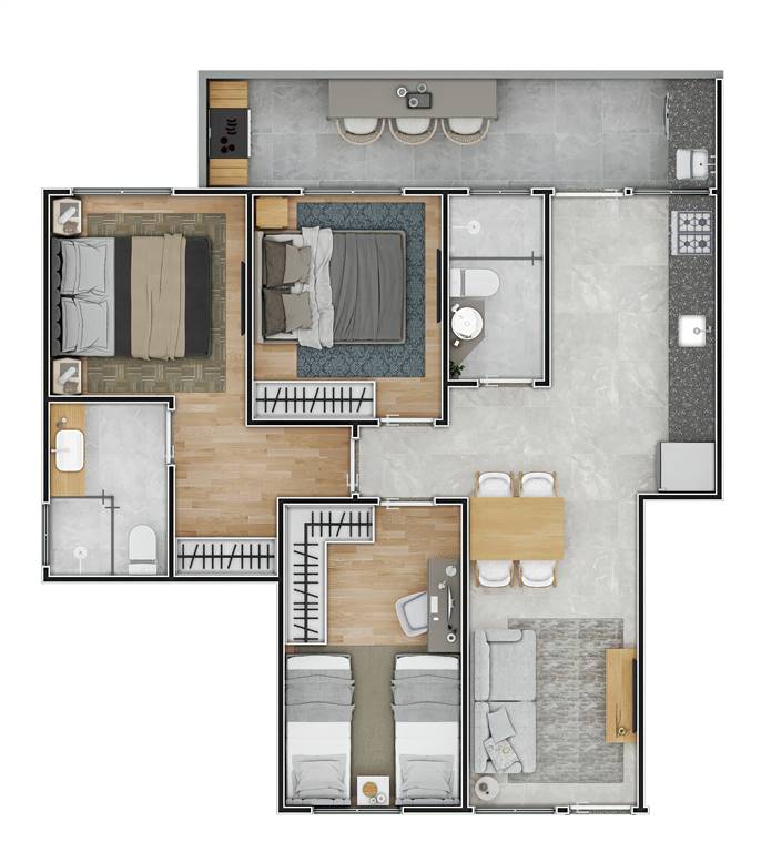 RES. TORRES ? 2 dormitórios sendo 1 suíte com varanda, sala, cozinha americana, área de serviço, banheiro social, varanda gourmet, vaga de garagem, vista para o mar. Prédio com lazer completo piscina adulto com borda infinita, piscina infantil, cinema, beauty center, coworking, pista de cooper e muito mais.