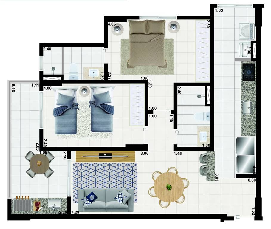Área Útil74,09m²