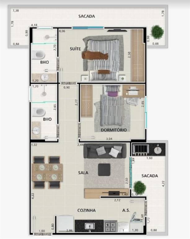 Área Útil69,28m²