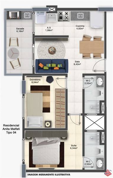 Área Útil54,80m²