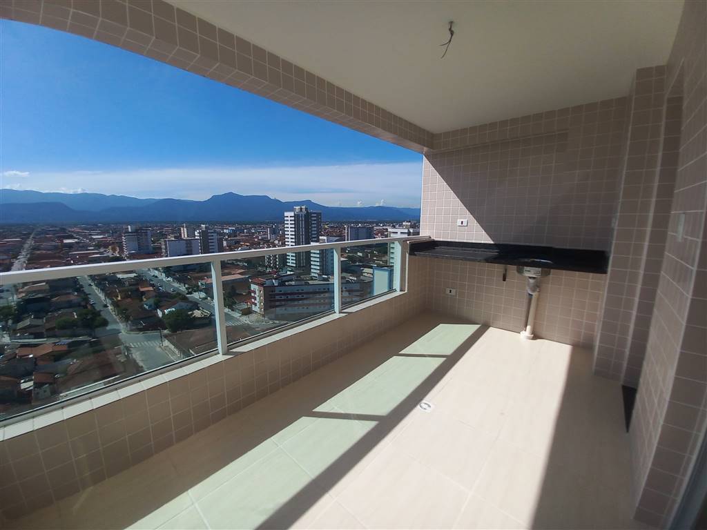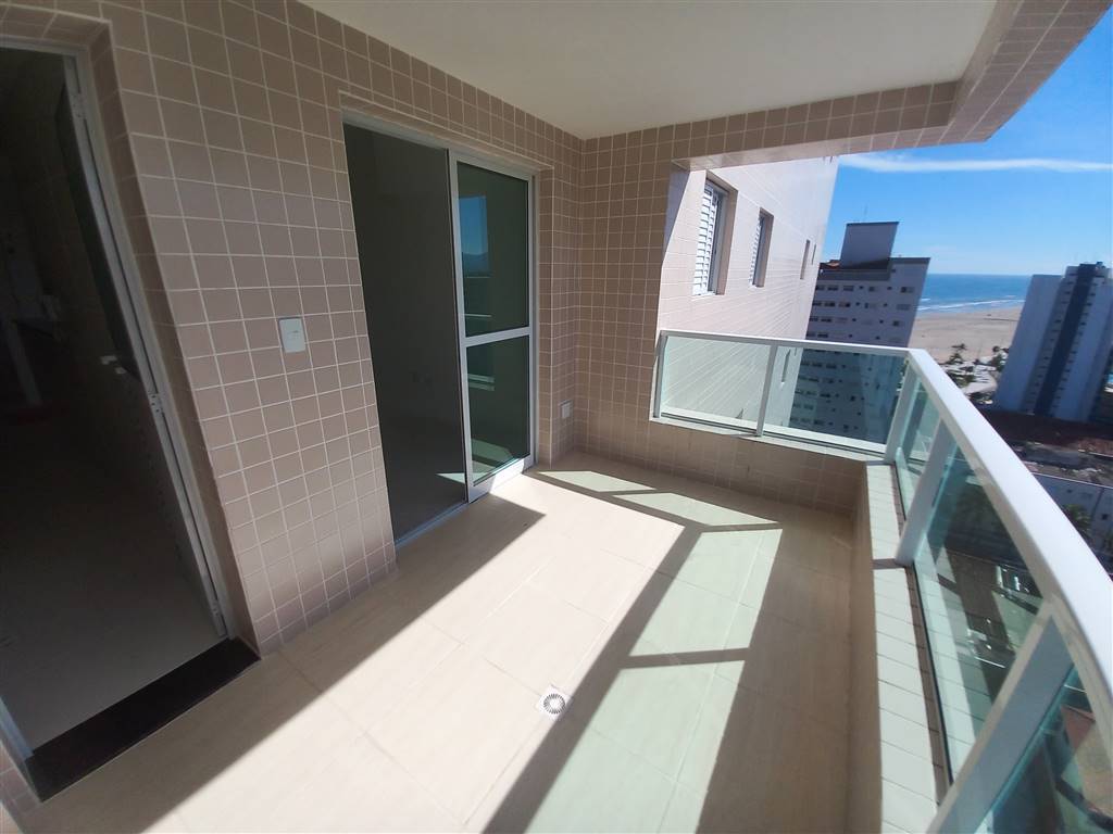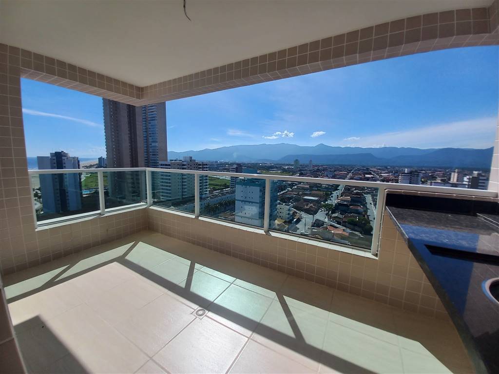 Apartamento em Praia Grande com vista parcial para o mar, 02 dormitórios sendo 01 suíte, sala com varanda gourmet, cozinha, área de serviço e 01 vaga de garagem.