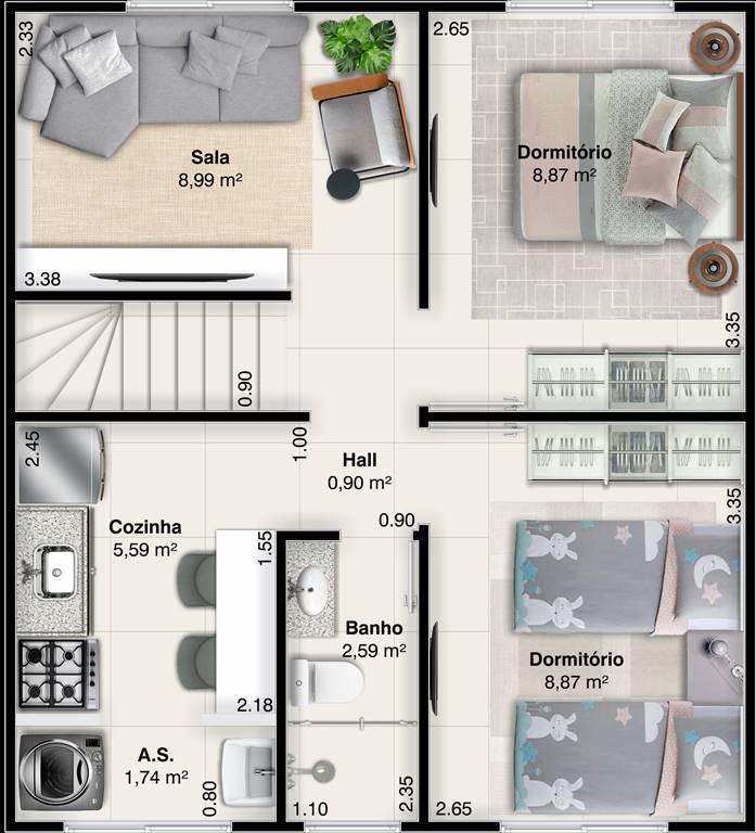 Área Útil43,96m²