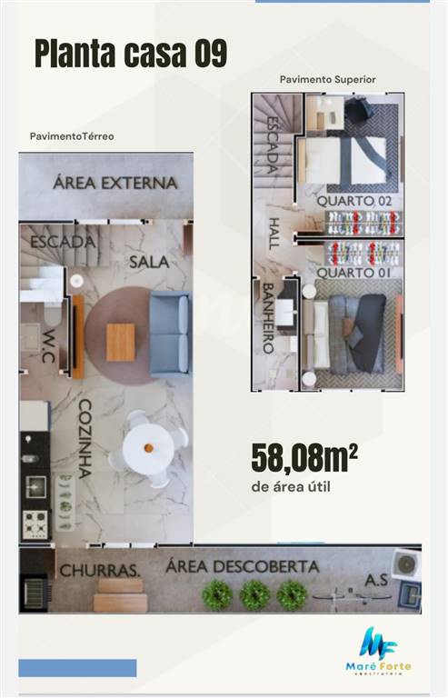 Área Útil58,08m²