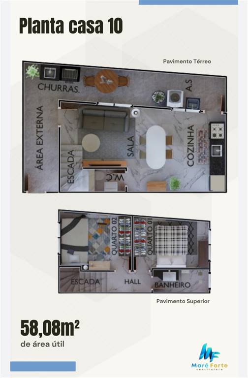 Área Útil58,08m²